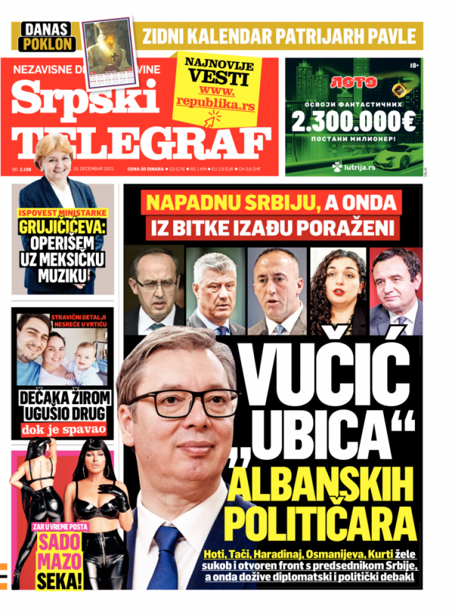 Srpski telegraf u štampanom izdanju za petak 30. decembar donosi pregršt važnih i interesantnih priča.