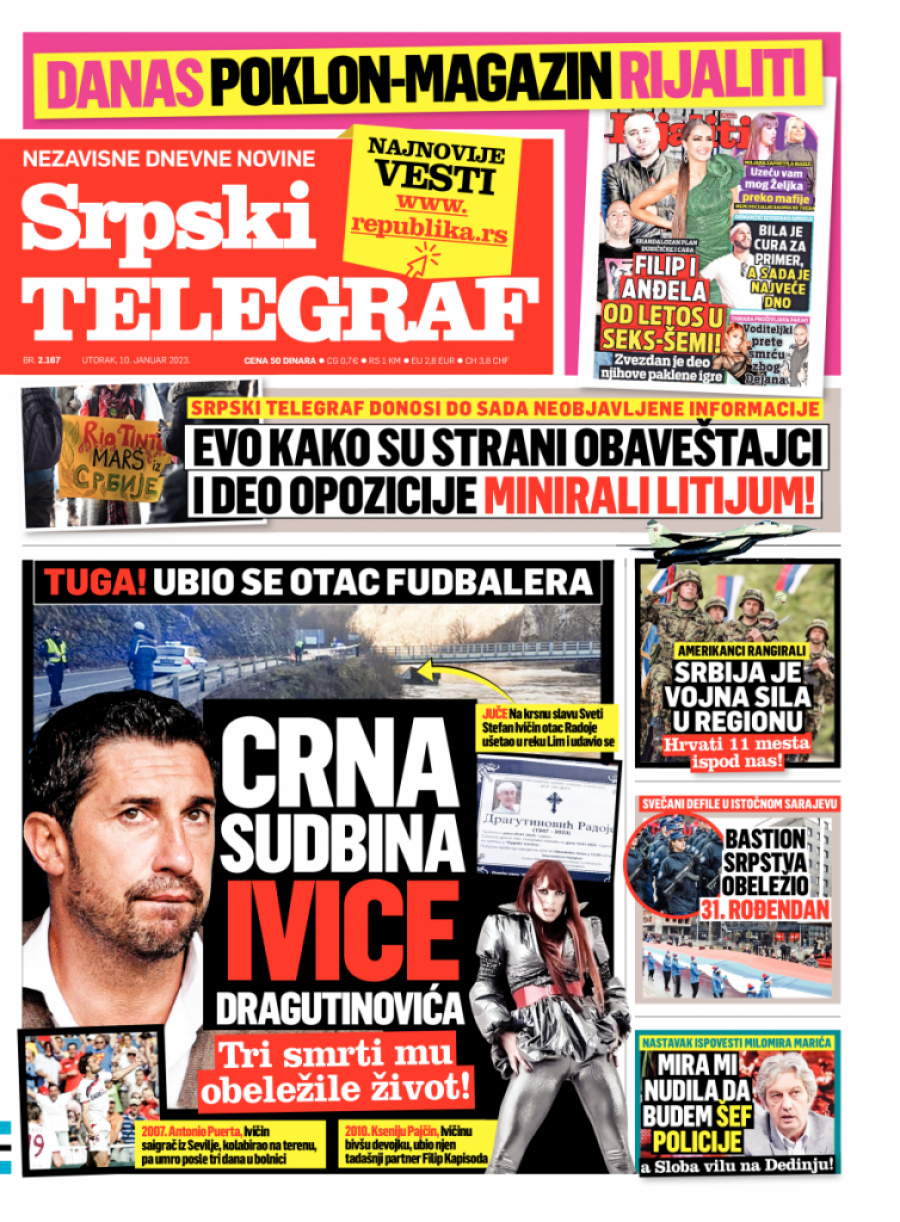 Srpski telegraf u štampanom izdanju za utorak 10. januar donosi pregršt važnih i interesantnih priča.