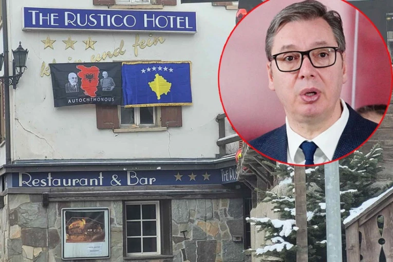 Prekoputa hotela u kome treba da odsedne predsednik Srbije Aleksandar Vučić u Davosu, gde će prisustvovati godišnjem sastanku Svetskog ekonomskog foruma, okačena je mapa “velike Albanije” i zastava lažne države Kosovo