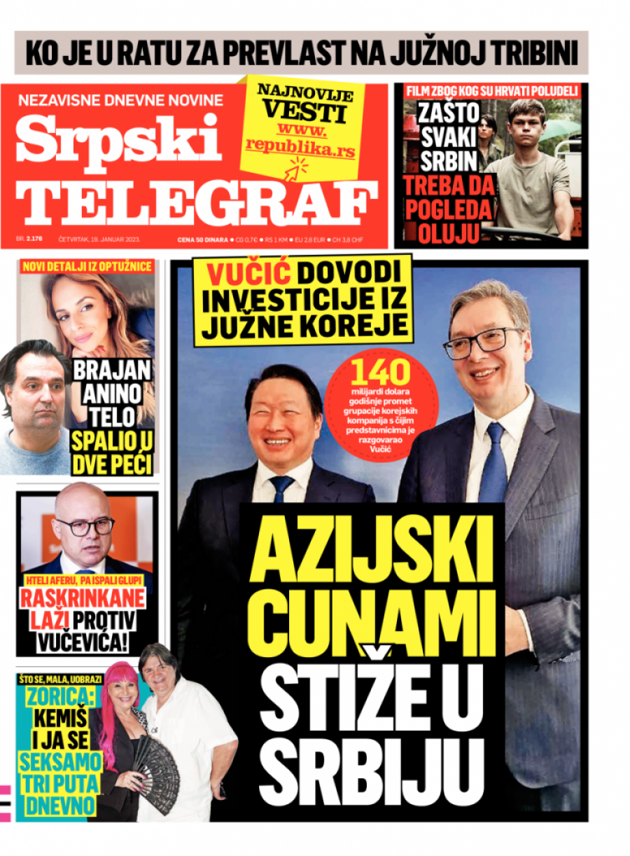 Srpski telegraf u štampanom izdanju za četvrtak 19. januar donosi pregršt važnih i interesantnih priča.