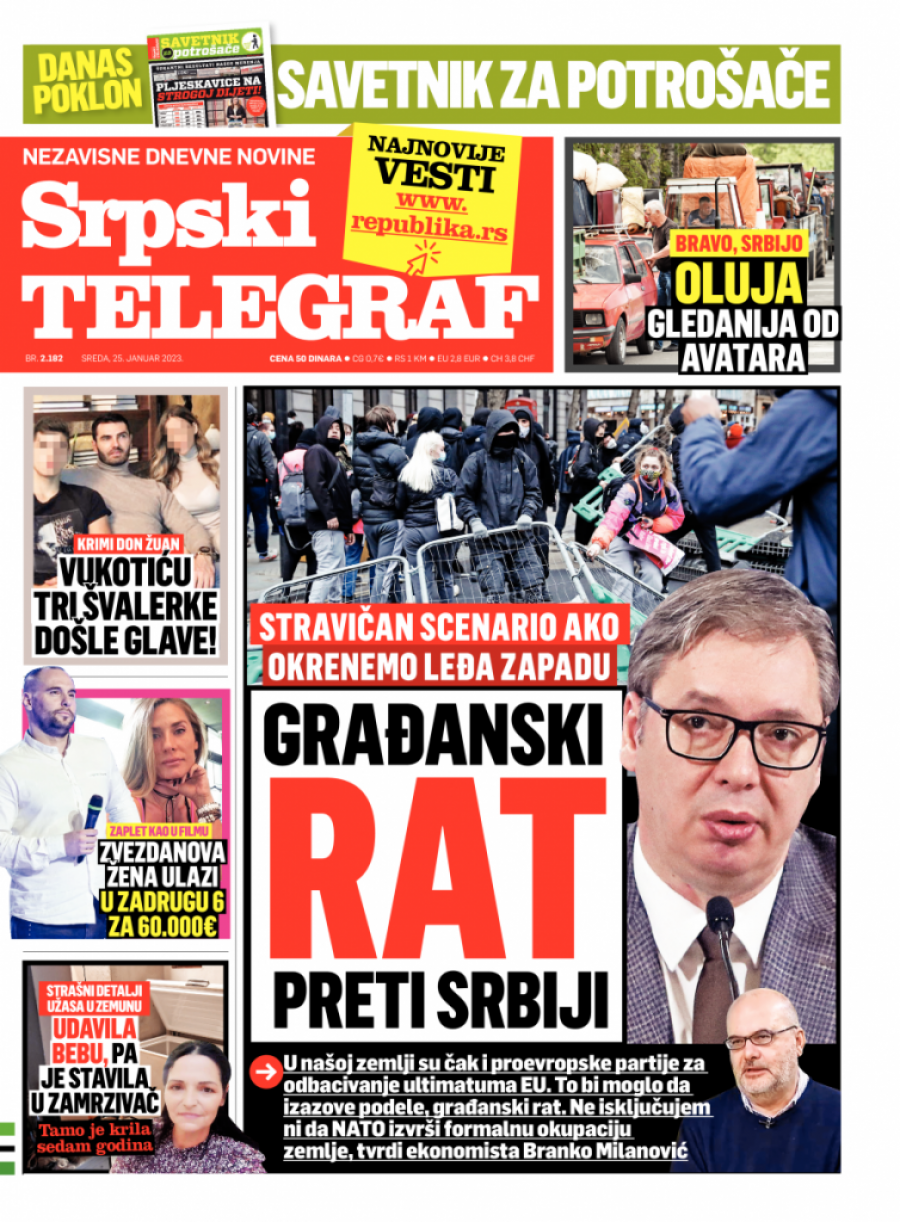 Srpski telegraf u štampanom izdanju za sredu 25. januar donosi pregršt važnih i interesantnih priča.