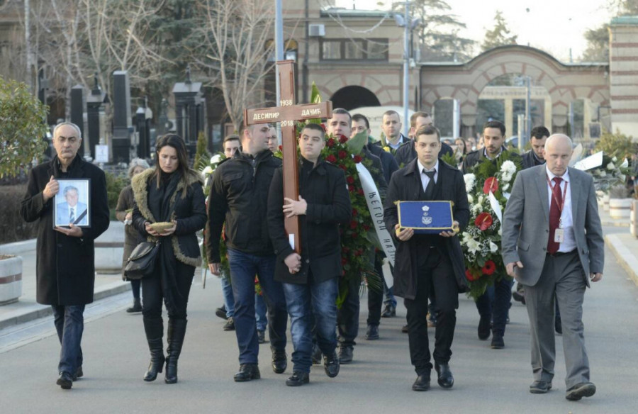 Lider SPS, njegova majka, supruga, sestra i deca, ispratili su voljenog oca, muža i dedu na večni počinak. Kolona od više stotina ljudi pratila je kovčeg, ispred kojeg je krst nosio Luka Dačić, Desimirov unuk, sin Ivice Dačića.