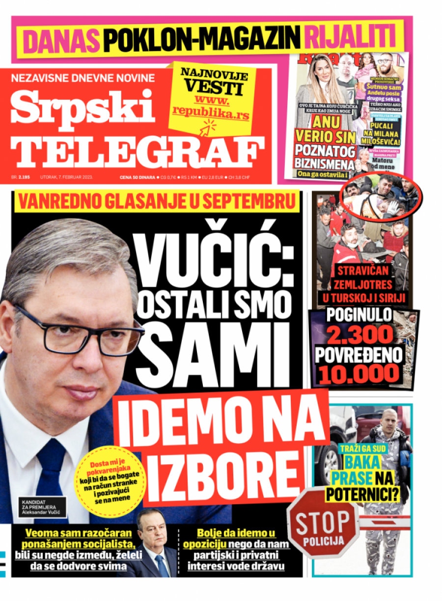 Srpski telegraf u štampanom izdanju za utorak 7. februar donosi pregršt važnih i interesantnih priča.