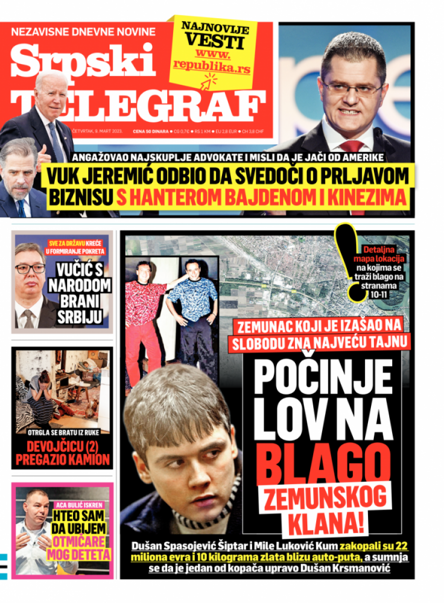 Srpski telegraf u štampanom izdanju za četvrtak 9. mart donosi pregršt važnih i interesantnih priča.