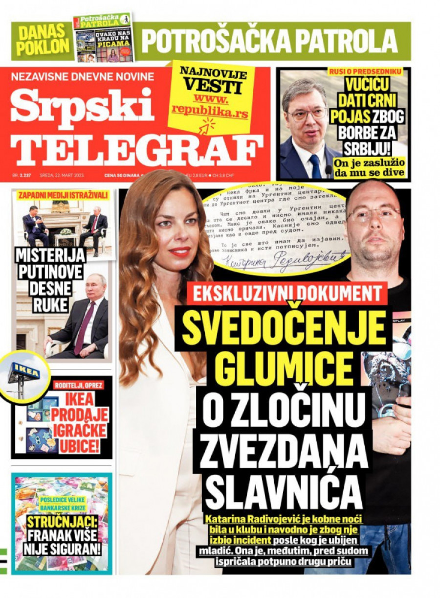 Srpski telegraf u štampanom izdanju za sredu 22. mart donosi pregršt važnih i interesantnih priča.