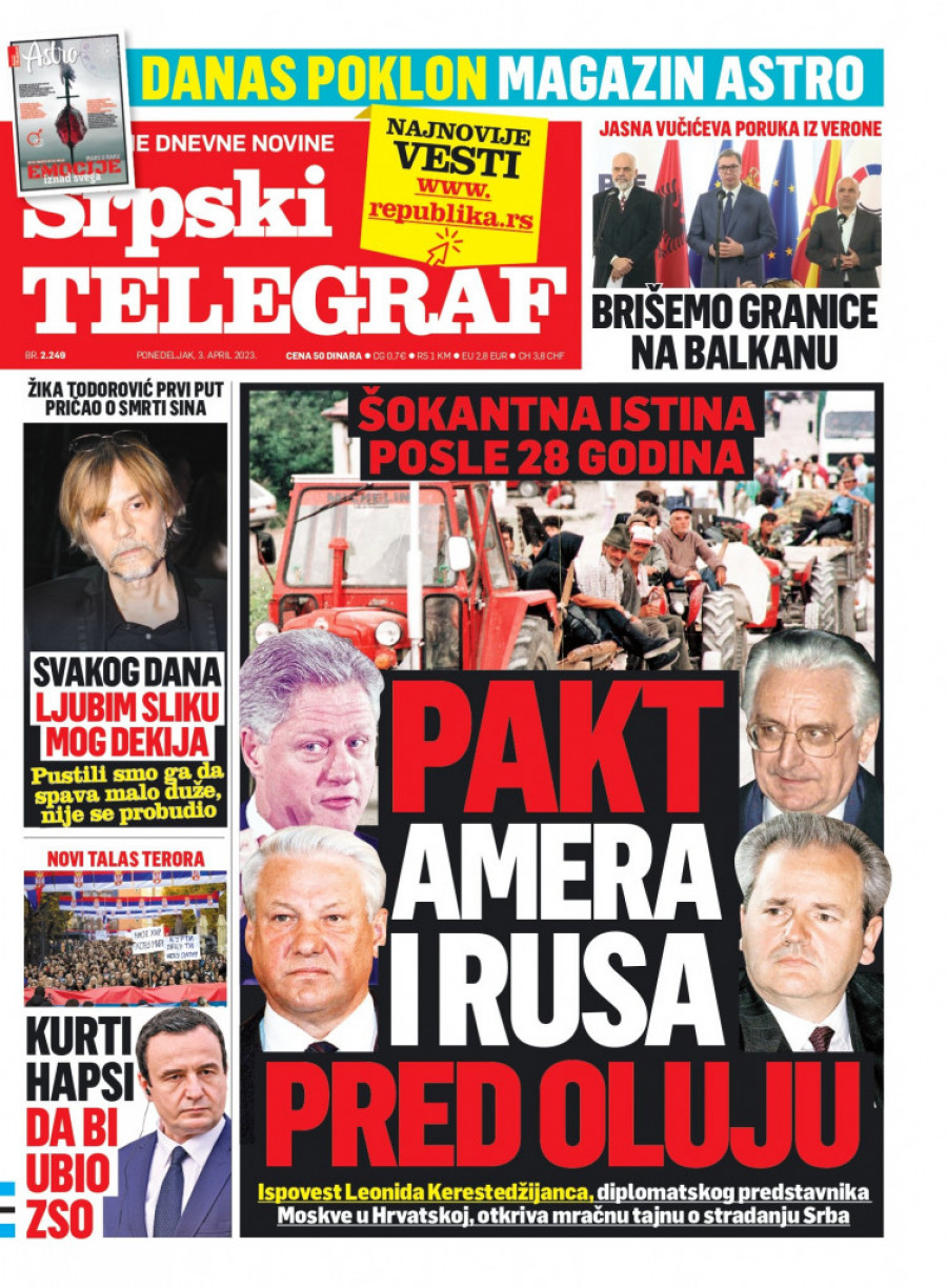 Srpski telegraf u štampanom izdanju za ponedeljak 3. april donosi pregršt važnih i interesantnih priča.
