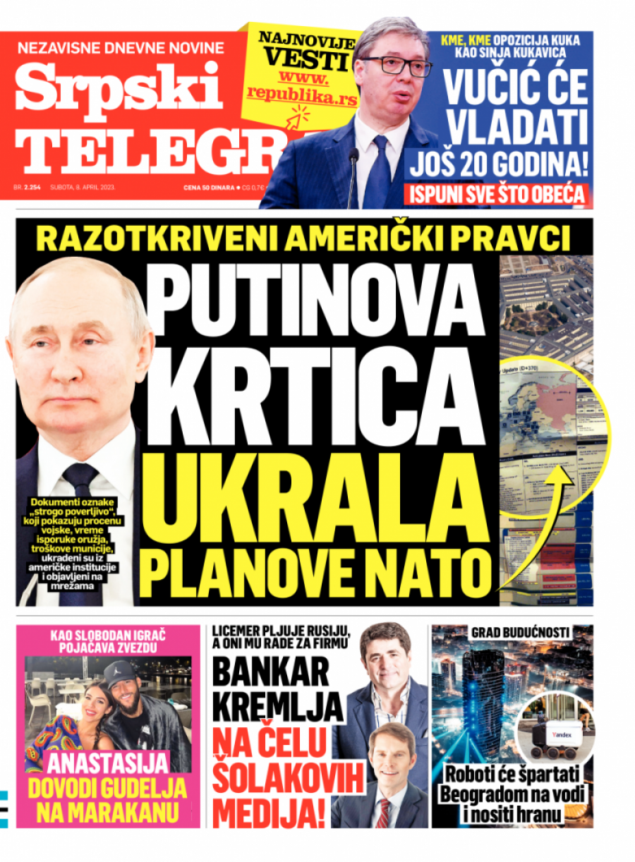 Srpski telegraf u štampanom izdanju za subotu 8. april donosi pregršt važnih i interesantnih priča.
