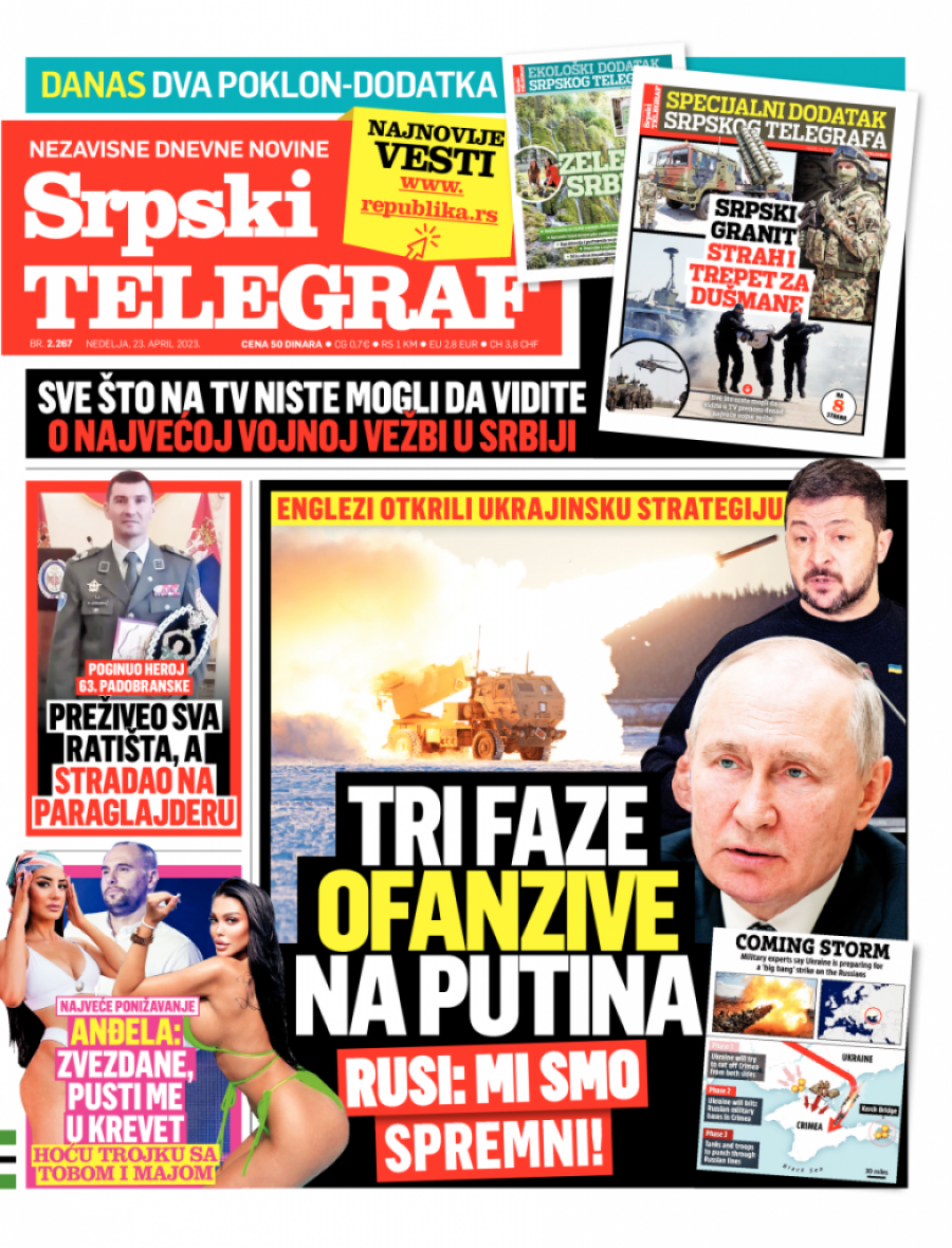Srpski telegraf u štampanom izdanju za nedelju 23. april donosi pregršt važnih i interesantnih priča.