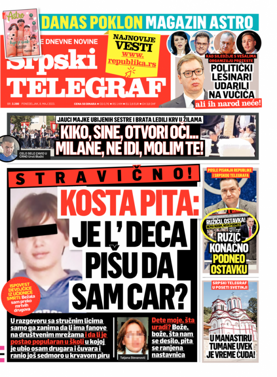 Srpski telegraf u štampanom izdanju za ponedeljak 8. maj donosi pregršt važnih i interesantnih priča.