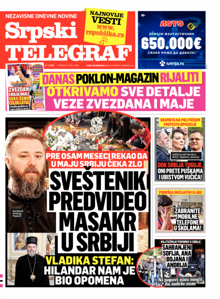 Srpski telegraf u štampanom izdanju za utorak 9. maj donosi pregršt važnih i interesantnih priča.