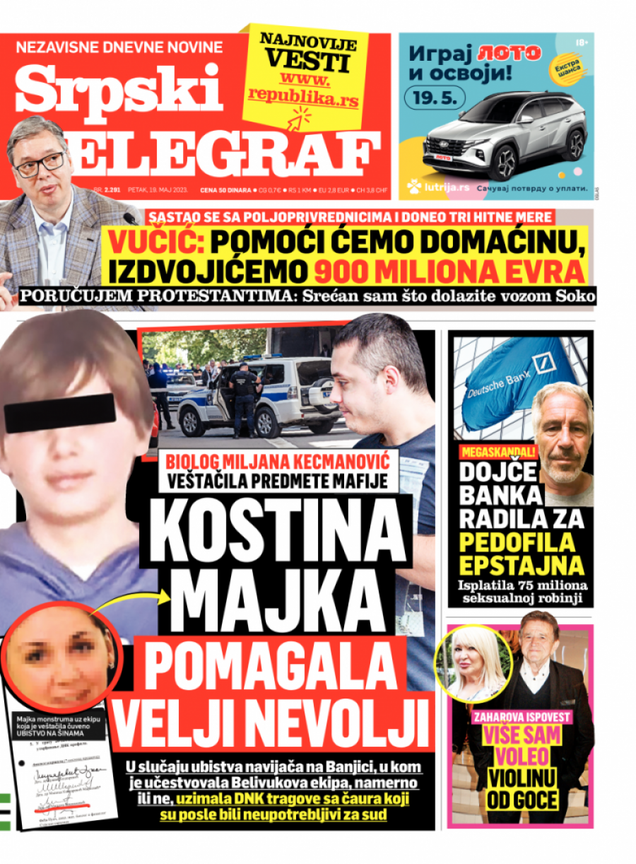 Srpski telegraf u štampanom izdanju za petak 19. maj donosi pregršt važnih i interesantnih priča.