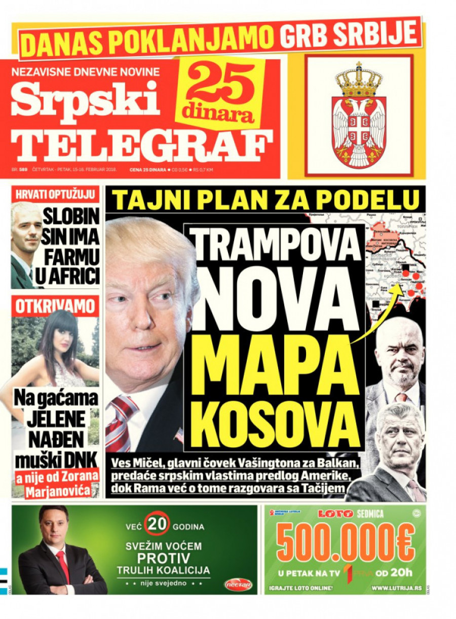 Foto: Tanjug/AP- Dolaskom Donalda Trampa na vlast stvari su počele da se menjaju. Krenule su smene Klintonovih ljudi, a novi ljudi iz administracije pokazuju sluh za srpsku stranu, koja želi da se pitanje južne srpske pokrajine trajno reši. Vrlo brzo u Srbiju će doći Ves Mičel, čovek zadužen za Balkan, naslednik Viktorije Nuland, koji će Beogradu ponuditi novi plan: Beogradu bi pripao sever Kosova, enklave bi dobile specijalan status, dok bi Priština dobila Preševo i Bujanovac, gde su Albanci većinsko stanovništvo - objašnjava sagovornik Srpskog telegrafa.