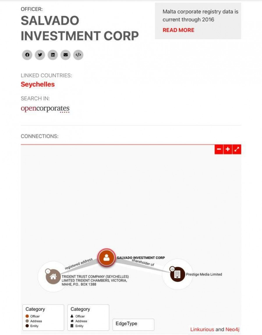 “Prilikom potpisivanja ugovora sa ljubljanskim notarom Bojanom Podgoršekom, ni vlasnik ni direktor kompanije Salvado nisu predstavljeni, to jest nisu otkriveni, ali je ugovor u ime misteriozne sejšelske firme potpisao ljubljanski advokat Andrej Simonič. Kompanija Salvado Investments Corporation nalazi se u takozvanim Paradajs Pejpers, gde su klasifikovane kao kontroverzne kompanije u poreskim rajevima pod sumnjom za utaju poreza i pranje novca”, objasnio je novinar Bojan Požar.