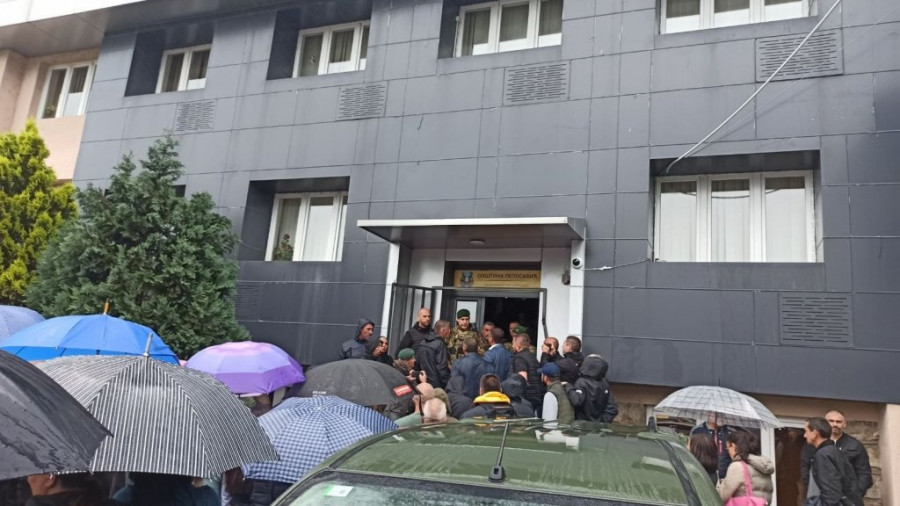 Velika grupa Srba u Leposaviću i jutros mirno protestuje ispred opštinske zgrade, sa zahtevom da specijalna policija i Hetemi napuste zgradu opštine, a jedan deo njih je uspeo da priđe do ulaznih vrata. Čuje se "napolje, napolje".