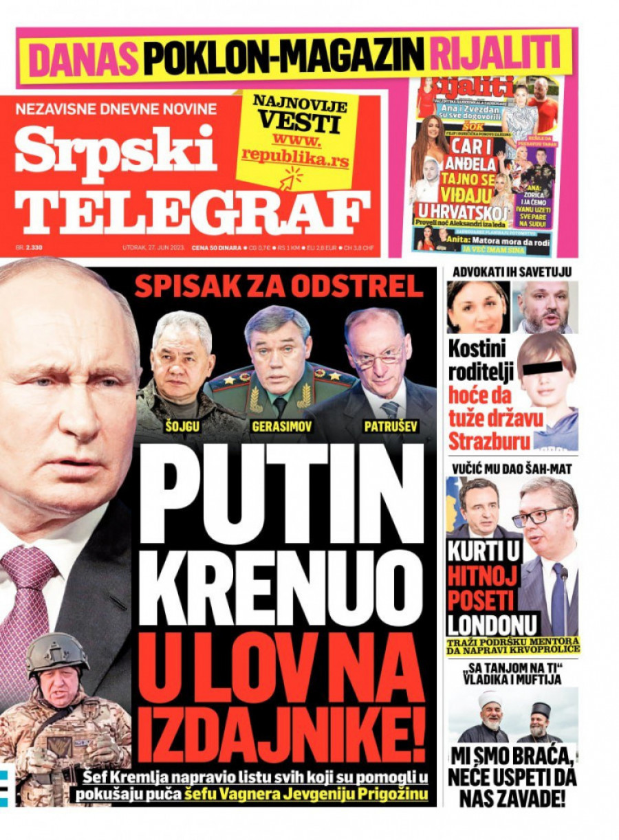 Srpski telegraf u štampanom izdanju za utorak 27. jun donosi pregršt važnih i interesantnih priča.