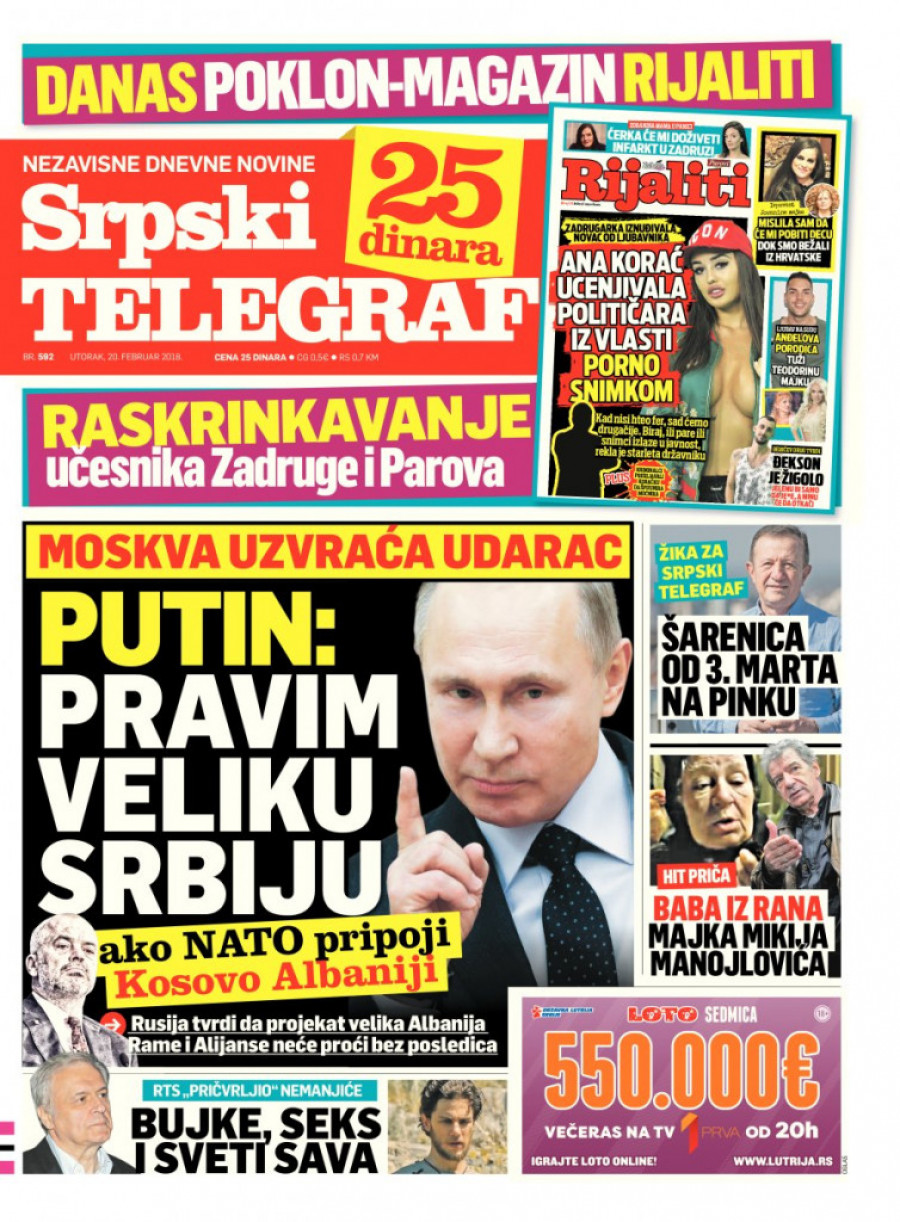Odgovore na ova, ali i mnoga druga pitanja, čitajte u Srpskom telegrafu za 20. februar, uz koji vas čeka i dodatak Rijaliti, kao i na portalu Republika.