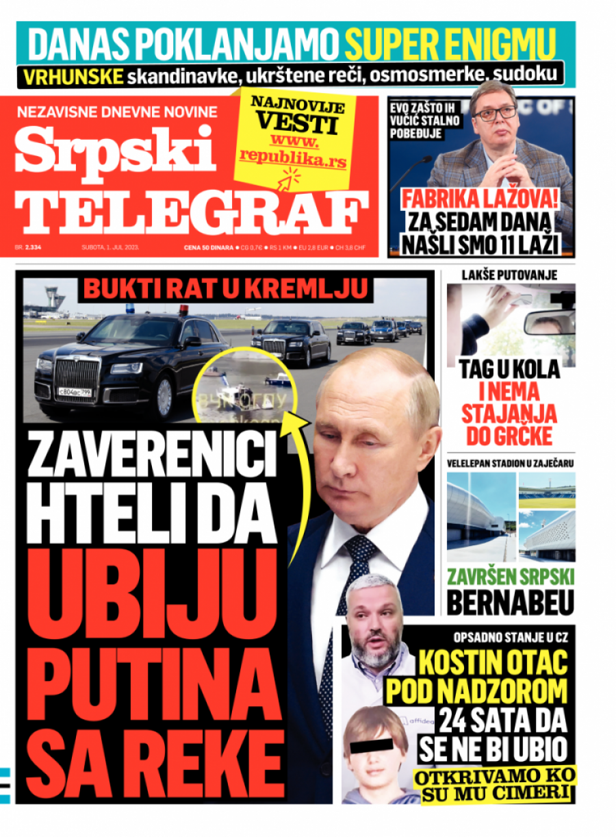 Srpski telegraf u štampanom izdanju za subotu 1. jul donosi pregršt važnih i interesantnih priča.