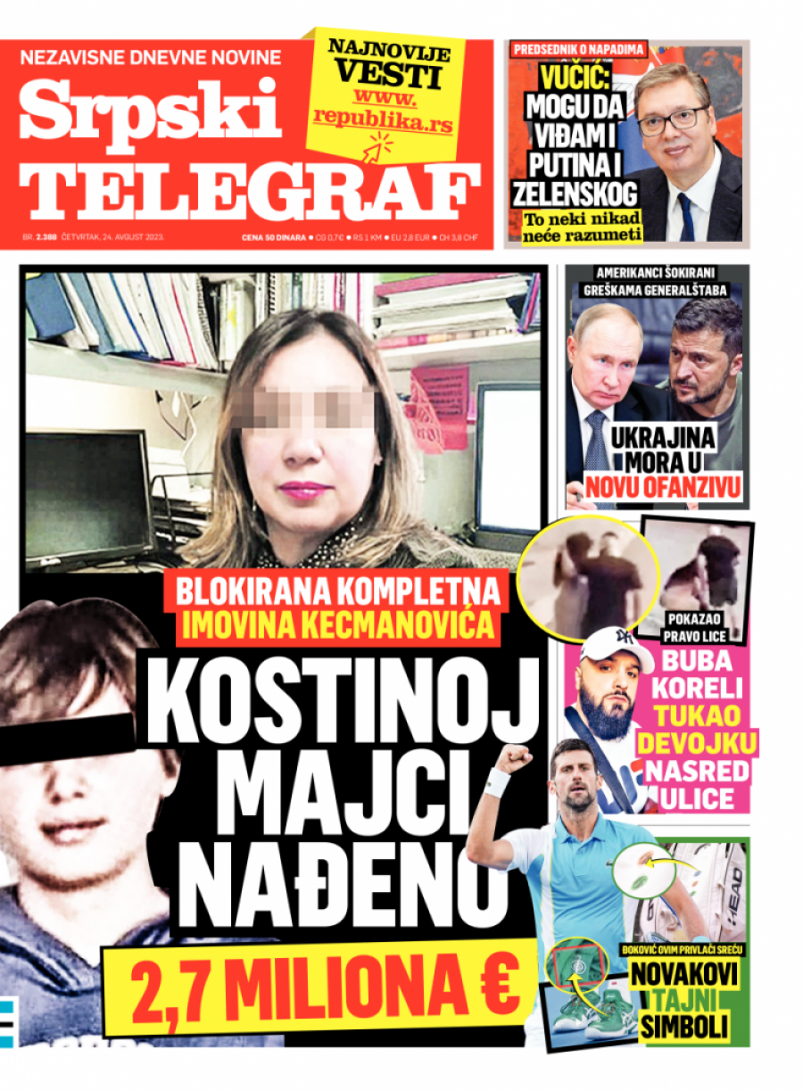 Srpski telegraf u štampanom izdanju za četvrtak 24. avgust donosi pregršt važnih i interesantnih priča.