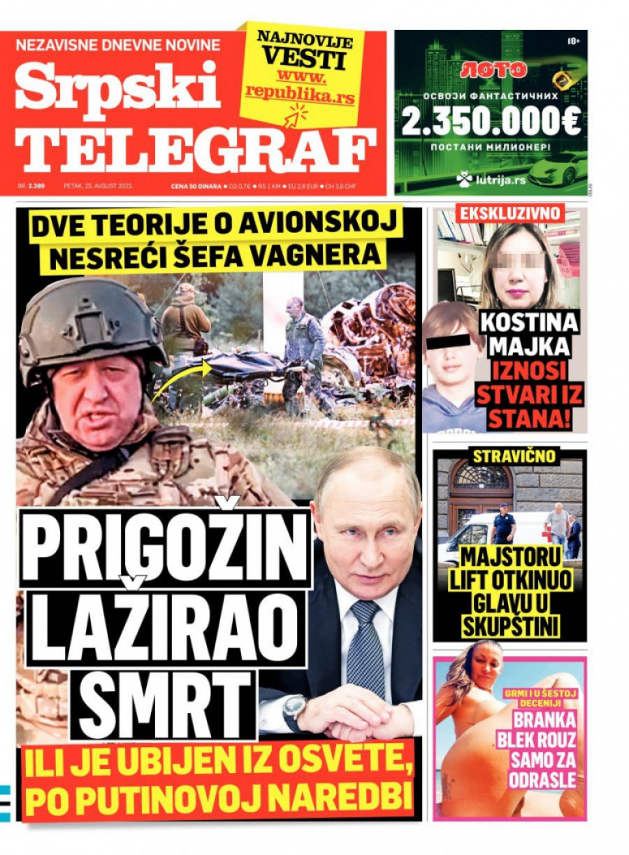 PRIGOŽIN LAŽIRAO SMRT! ČITAJTE U SRPSKOM TELEGRAFU!