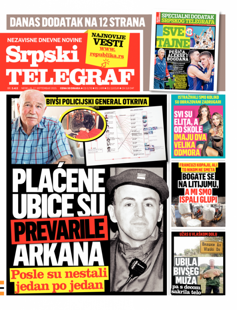 Srpski telegraf u štampanom izdanju za nedelju 17. septembar donosi pregršt važnih i interesantnih priča.