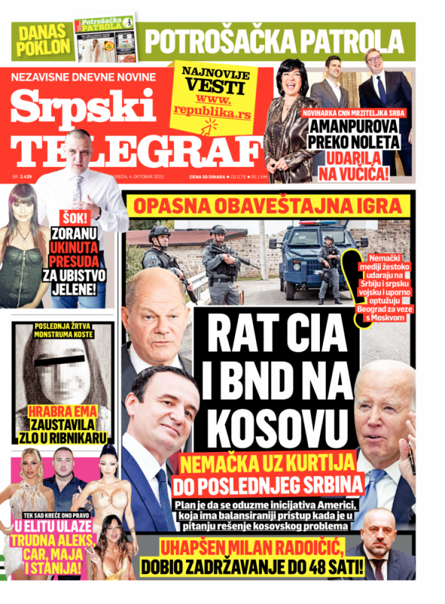 Srpski telegraf u štampanom izdanju za sredu 4. oktobar donosi pregršt važnih i interesantnih priča.