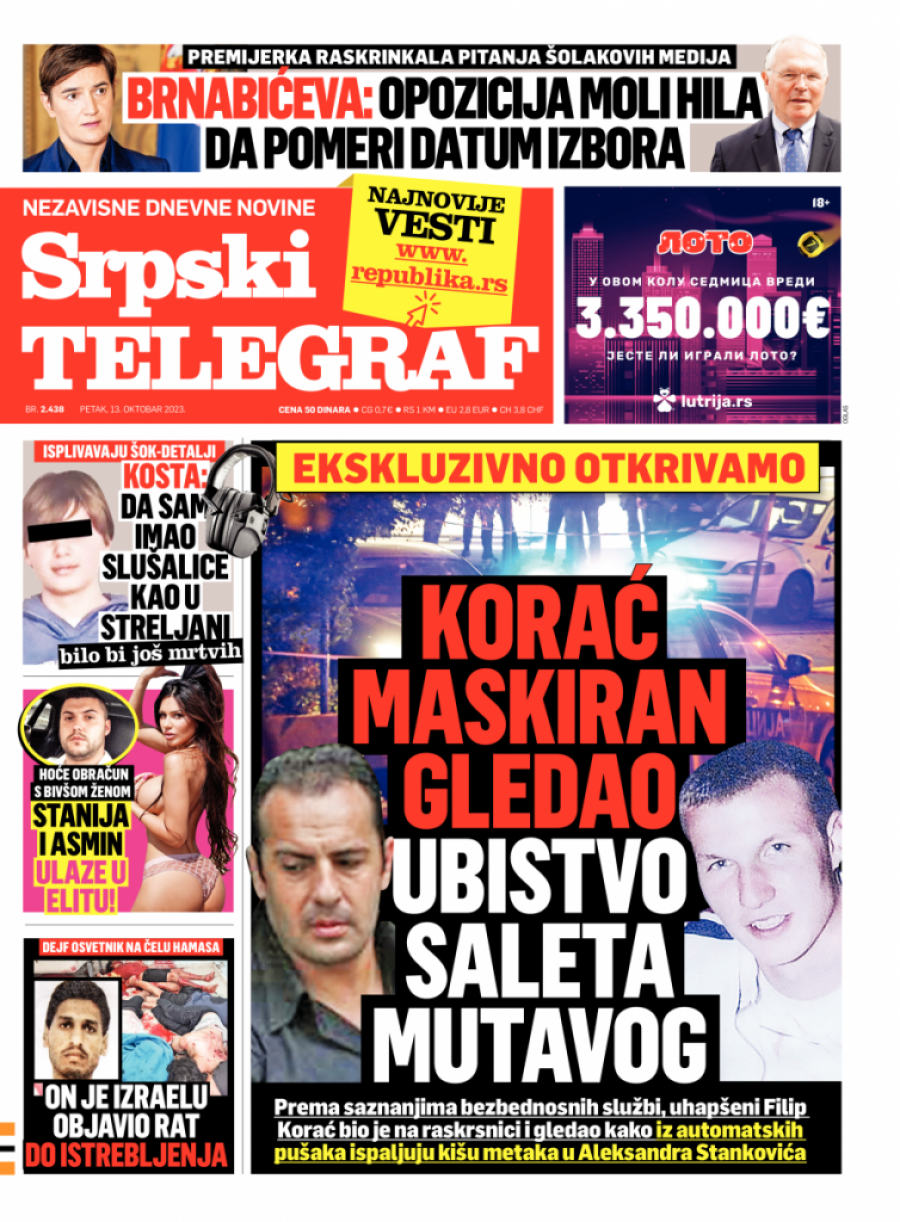 Srpski telegraf u štampanom izdanju za petak 13. oktobar donosi pregršt važnih i interesantnih priča.