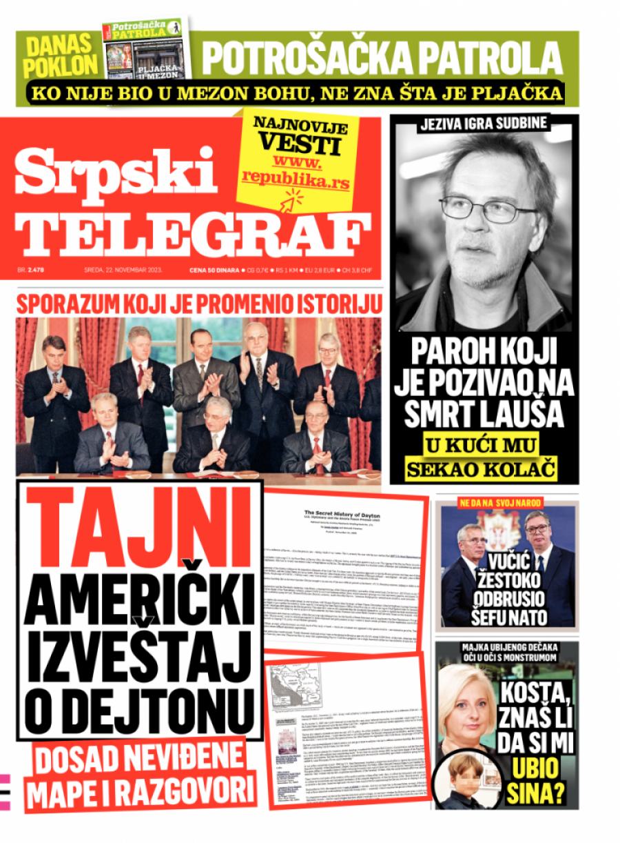Srpski telegraf u štampanom izdanju za sredu 22. novembar donosi pregršt važnih i interesantnih priča.