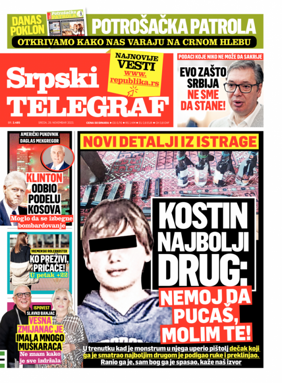 Srpski telegraf u štampanom izdanju za sredu 29. novembar donosi pregršt važnih i interesantnih priča.