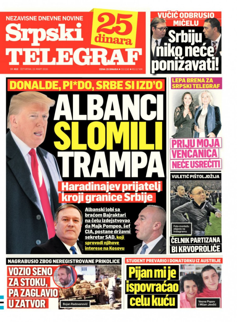 Američki predsednik Donald Tramp razočarao je Srbe. Pod pritiskom moćnog i prebogatog albanskog lobija, koji predvode braća Bajraktari, na mesto državnog sekretara SAD postavio je Haradinajevog prijatelja Majka Pompea. Doskorašnji šef CIA, osim što podržava Albance, ne krije koliko mrzi Rusiju i sve koje smatra njenim saveznicima, pa time i Srbiju.