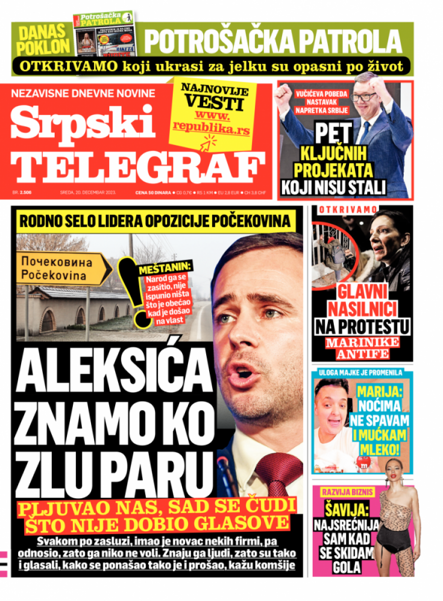 Srpski telegraf u štampanom izdanju za sredu 20. decembar 2023. donosi pregršt važnih i interesantnih priča.