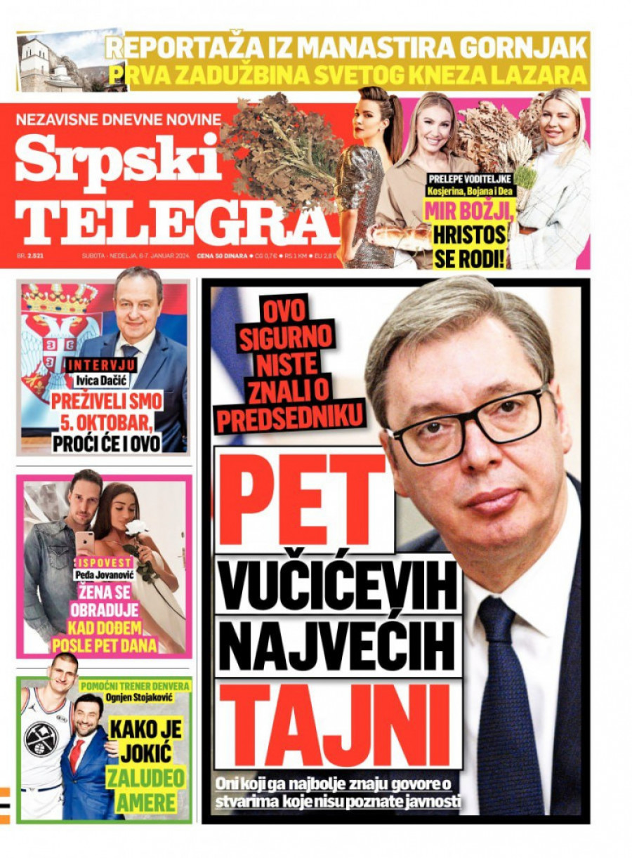 Srpski telegraf u izdanju za subotu 6. januar donosi pregršt važnih i interesantnih priča.