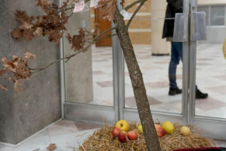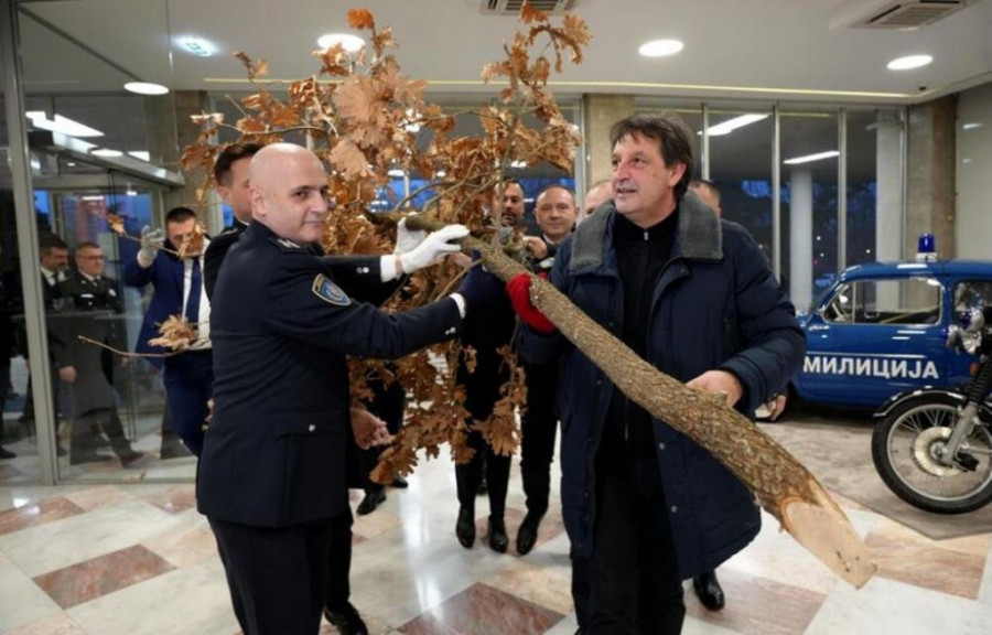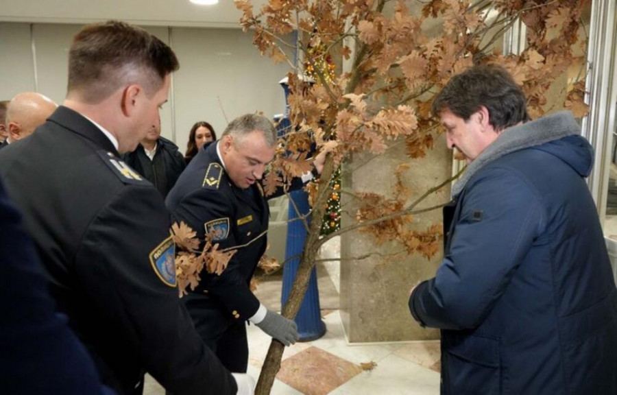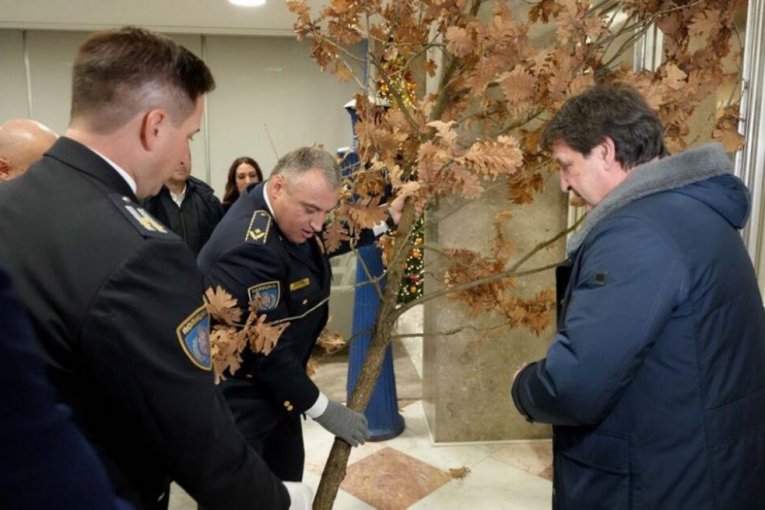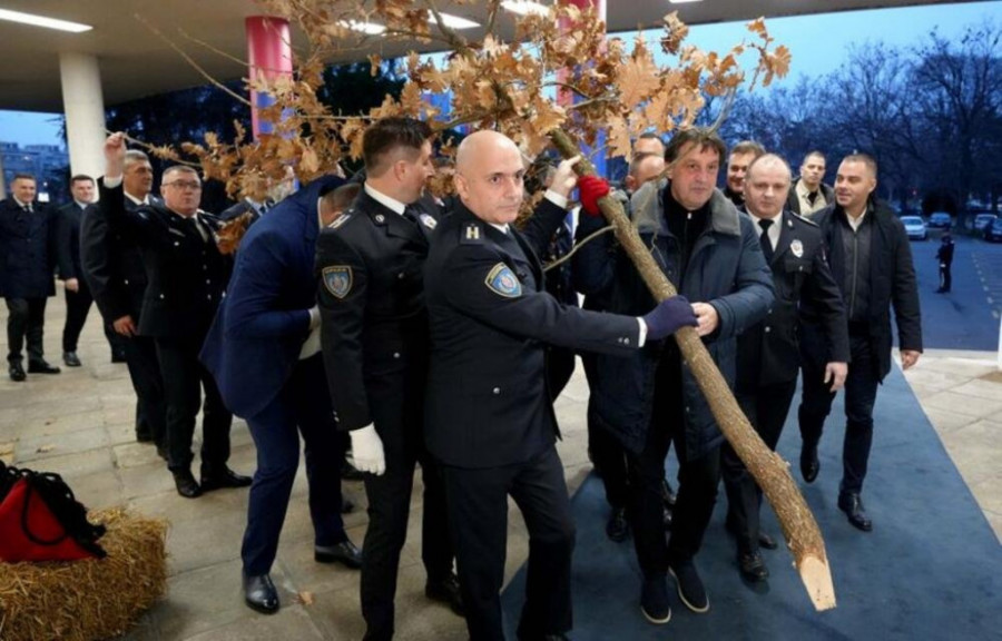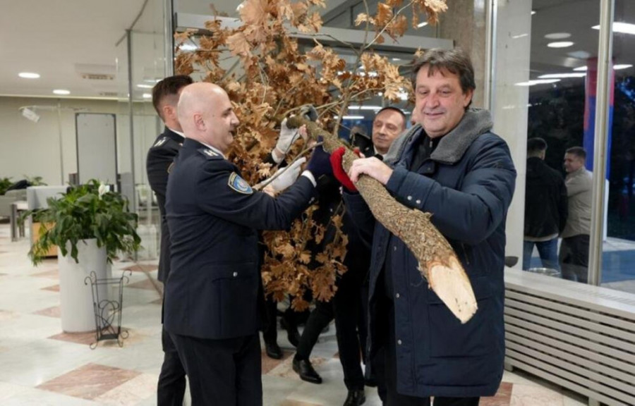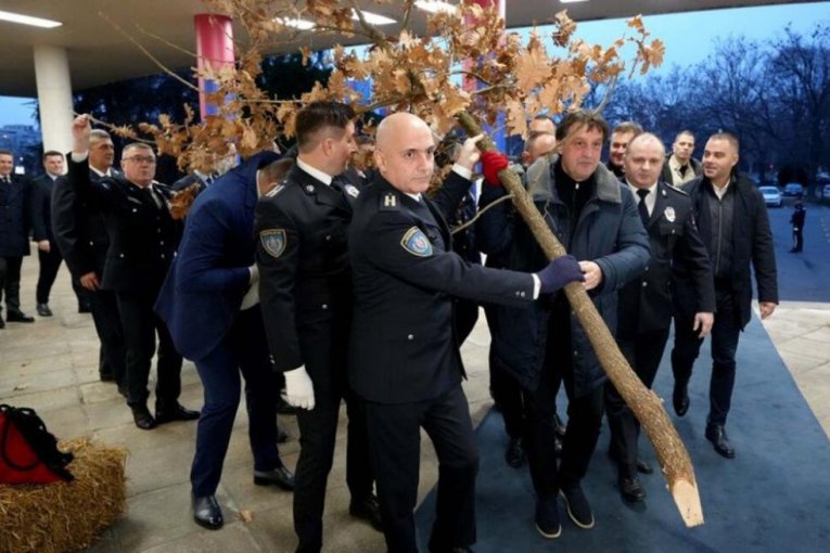 GAŠIĆ TRADICIONALNO UNEO BADNJAK U SEDIŠTE MUP: "Neka sreća i radost budu u vašim srcima"