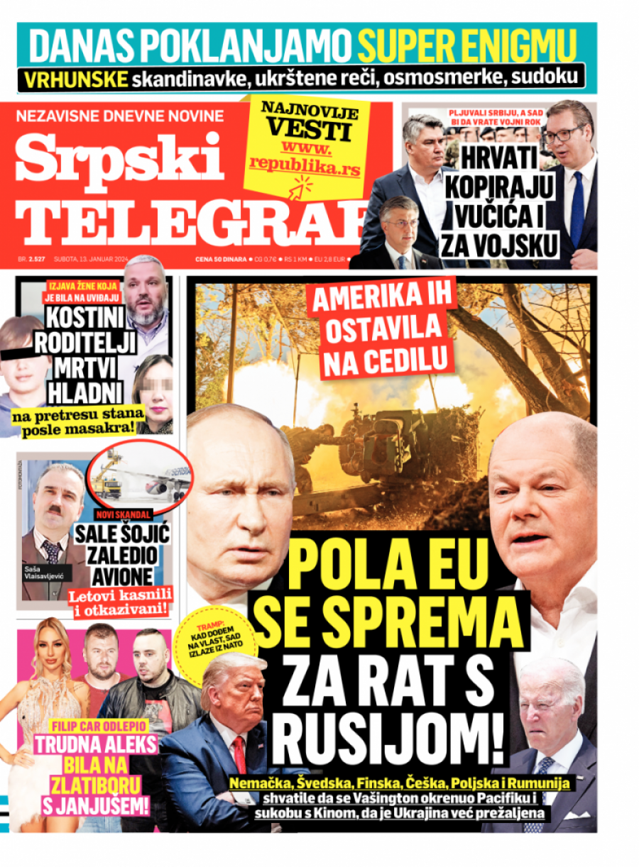 Srpski telegraf u izdanju za subotu 13. januar donosi pregršt važnih i interesantnih priča.