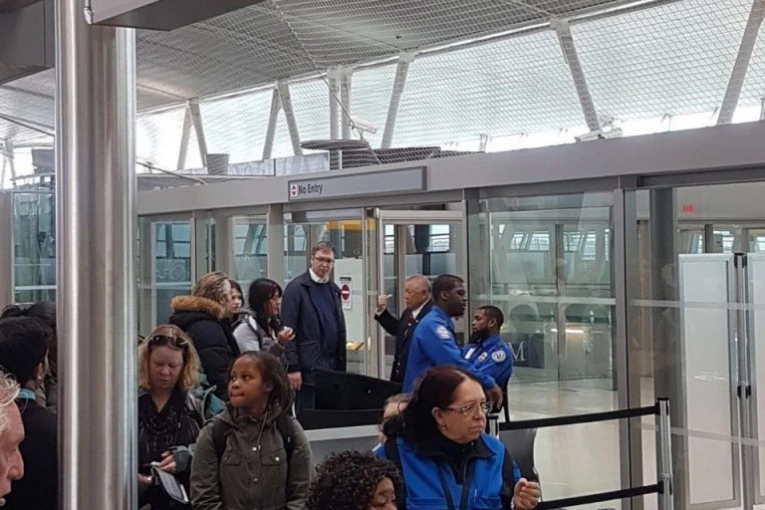 Novinar Srpskog telegrafa slikao je predsednika Srbije Aleksandra Vučića na aerodromu u Njujorku.
