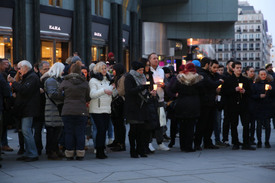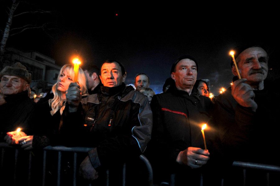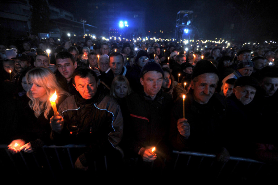 Na trgu u Aleksincu okupio se veliki broj građana, koji, kao i gosti, predstavnici državnih institucija i valde, drže sveće u čast poginulih u bombardovanju.