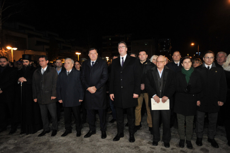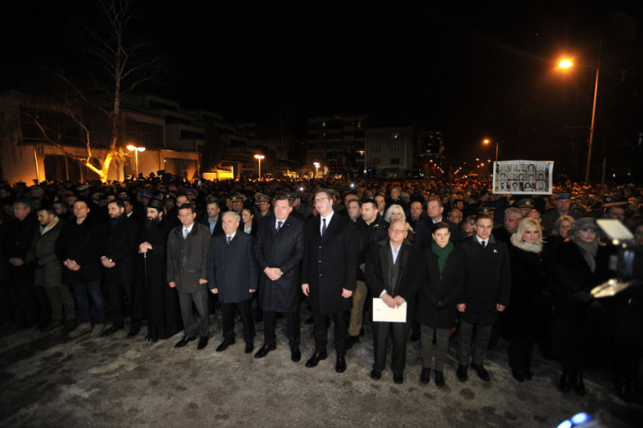 Foto: Tanjug/D. GOLLNaziv ceremonije je "Oprostićemo, ako budemo mogli, zaboraviti, samo ako nas ne bude bilo", a počela je simbolično, gašenjem rasvete i zvukom sirene za vazdušnu opasnost.