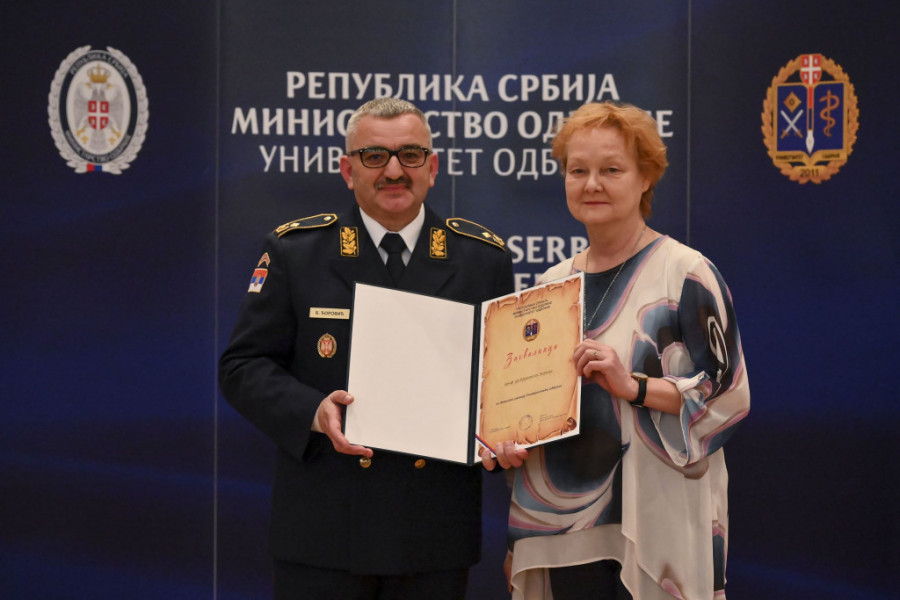 Na današnjoj svečanosti uručene su diplome onima koji su stekli zvanje doktora nauka na Univerzitetu odbrane, koje su uručili rektor Univerziteta odbrane, načelnik Vojne akademije pukovnik vanredni prof. dr Srđan Blagojević i dekan Medicinskog fakulteta VMA prof. dr Sonja Marjanović.