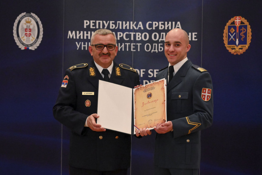 - Oficirski poziv se, ipak, ne iscrpljuje u znanju i iskustvu, jer je nužno prožet vojnim etosom, s kojim živi i bez koga umire. Za razliku od drugih društvenih normi koje se uče, moralne norme se osećaju. Stoga je neophodno da se u Univerzitetu odbrane živi u skladu sa kodeksom časti Vojske Srbije - rekao je rektor Univerziteta odbrane i dodao da se Univerzitet s pažnjom odnosi prema kadetima i učenicima, imajući u vidu da i druge vojske i njihove visokoškolske ustanove prepoznaju da je negovanje talenata imperativ savremenog vojnog obrazovanja.