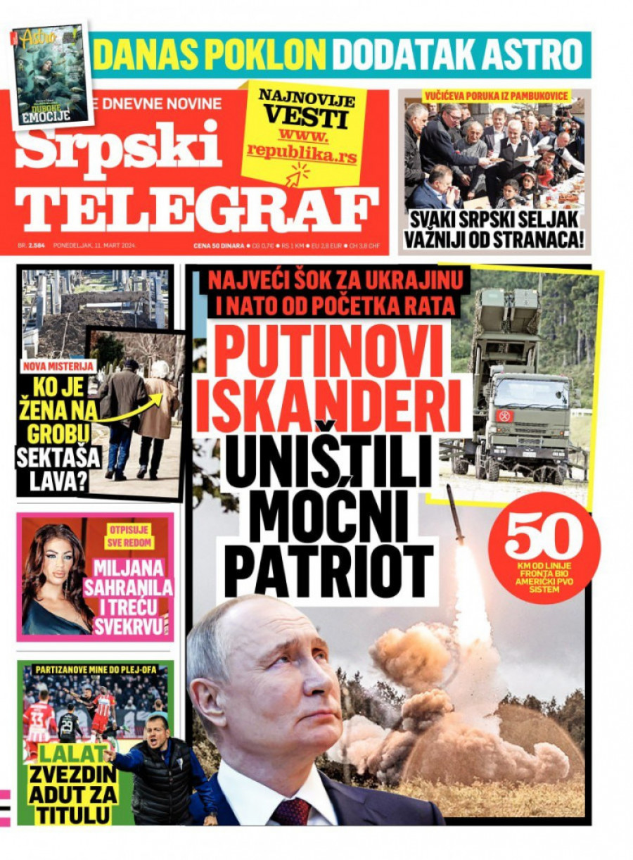 Srpski telegraf u izdanju za ponedeljak 11. mart donosi pregršt važnih i interesantnih priča.