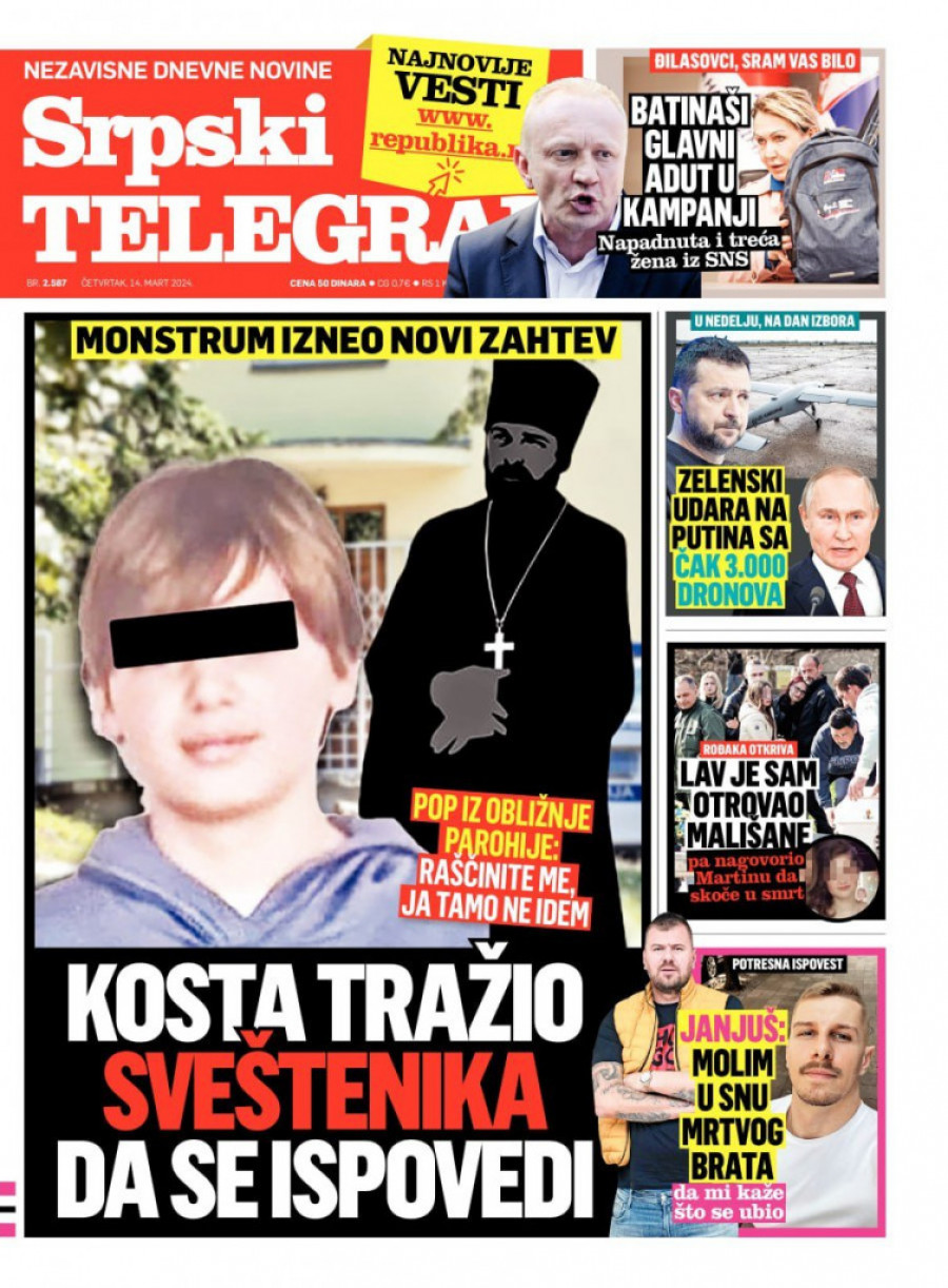 KOSTA TRAŽIO SVEŠTENIKA DA SE ISPOVEDI, MONSTRUM IZNEO NOV ZAHTEV! ČITAJTE U SRPSKOM TELEGRAFU!
