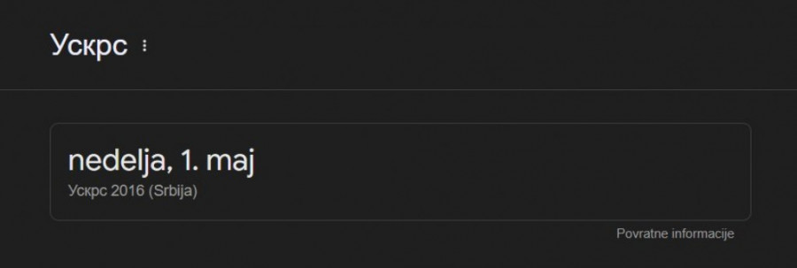 2016. je Uskrs bio baš 1. maja. Iz tog razloga izletišta su bila skoro prazna i pusta. Građani su masovno bili prisutni na liturgijama u crkvenim hramovima SPC, dočekivali su Blagodatni oganj, dok su dan proveli sa porodicama. Pored sva praznika koja su se poklapala, vreme nije bilo baš lepo, bilo je hladno. Tradicionalna izletišta bila su u toku prepodneva poluprazna, a tome je doprinela i najava kiše.