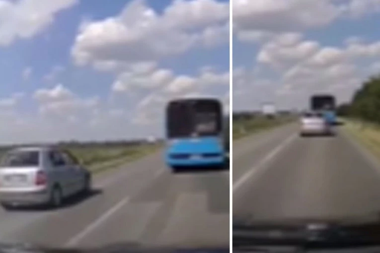 POKUŠAO DA ZAOBIĐE AUTOBUS, PA UMALO IZAZVAO UDES: Jeziva scena u Temerinu! (VIDEO)