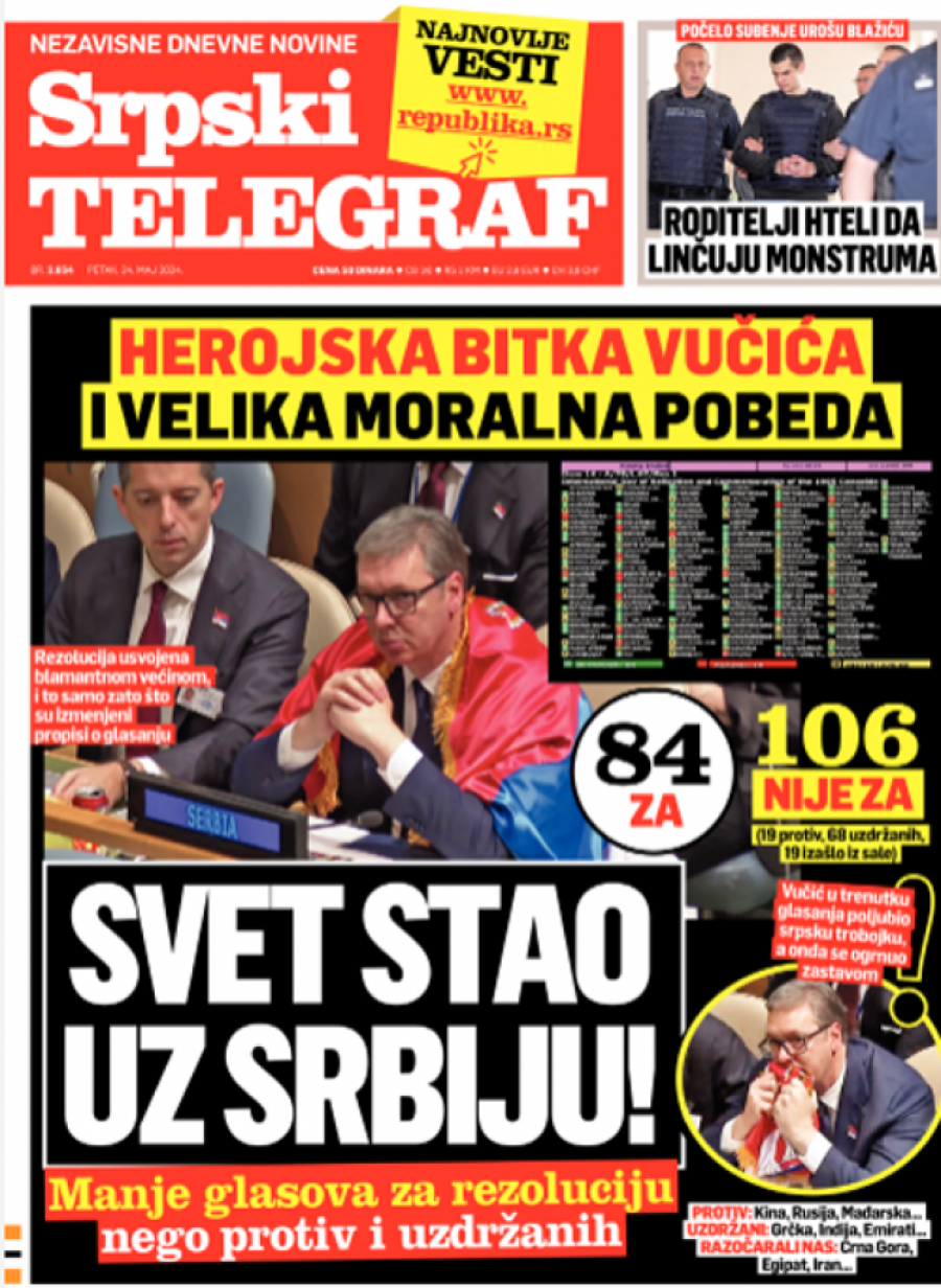 Srpski telegraf u izdanju za petak 24. maj donosi pregršt važnih i interesantnih priča, plus vam poklanja Specijalni dodatak Srpskog telegrafa.