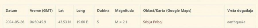 Aparati Seizmološkog zavoda Srbije zabeležili su rano jutros slab zemljotres na području Priboja.