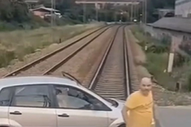 ZAUSTAVIO KOLA NASRED ŠINA, PA NAPRAVIO HAOS! Vozač izleteo iz automobila, pa psovao i vređao mašinovođu! (VIDEO)