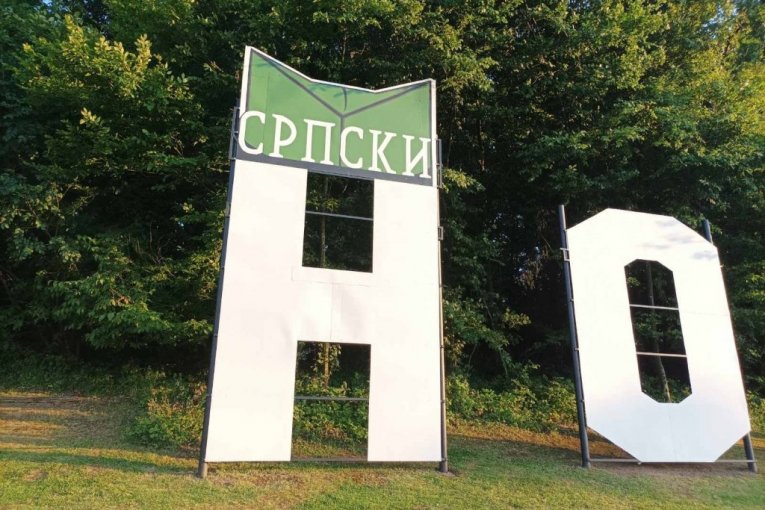 Od starog natpisa ostali su samo noseći stubovi, kompletna stara slova su poskidali, kao i drvene daske koje su nosile natpis.