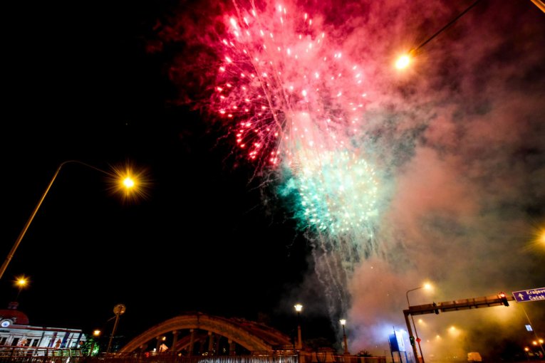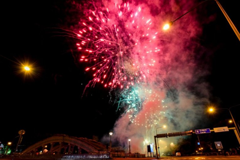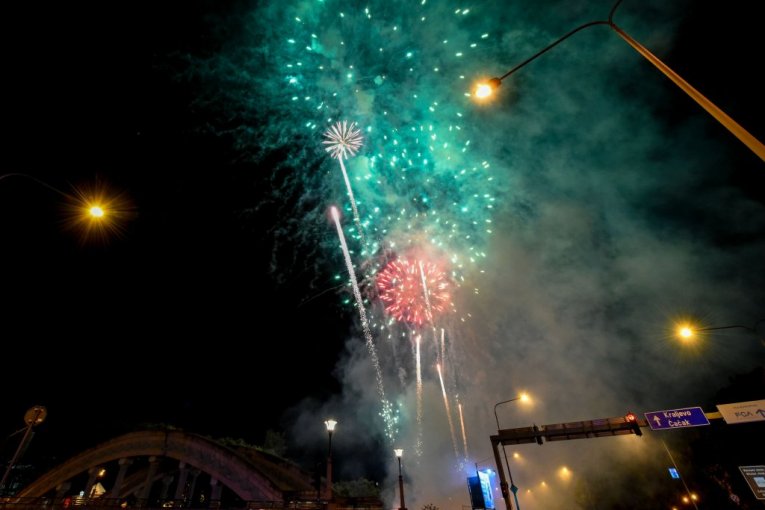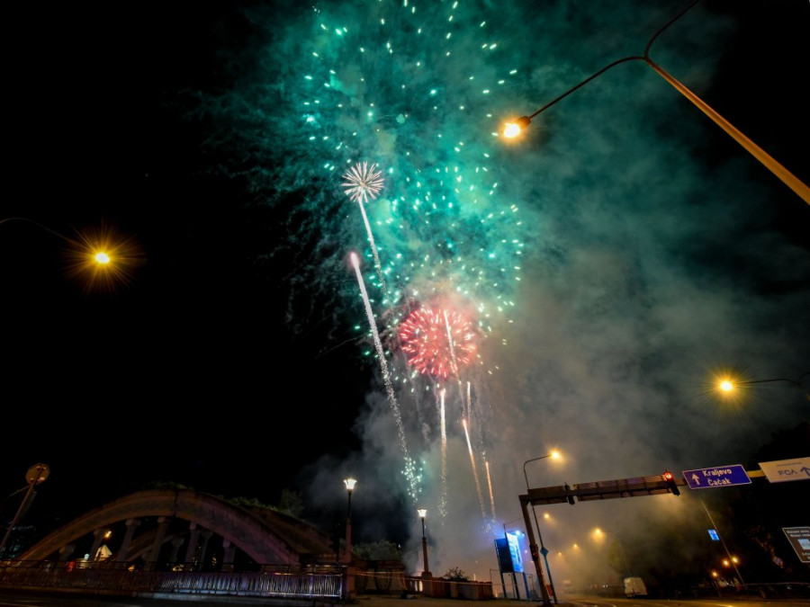Zbog vatrometa su od 21.15 sati za saobraćaj zbog bezbednosti na pola sata zatvorene ulice Kosovska i Kneza Mihaila u centru Kragujevca, a saobraćaj je preusmeren na alternativne pravce.