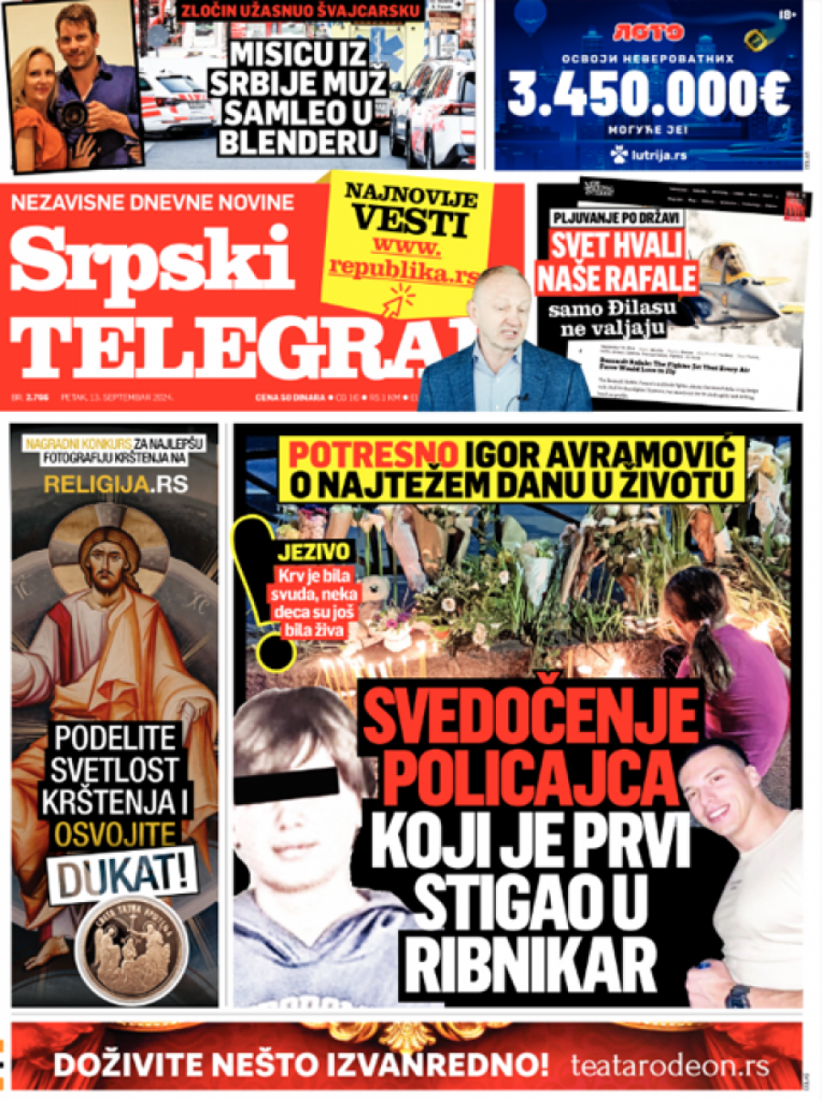 Srpski telegraf u izdanju za petak, 13. septembar donosi pregršt važnih i interesantnih priča!