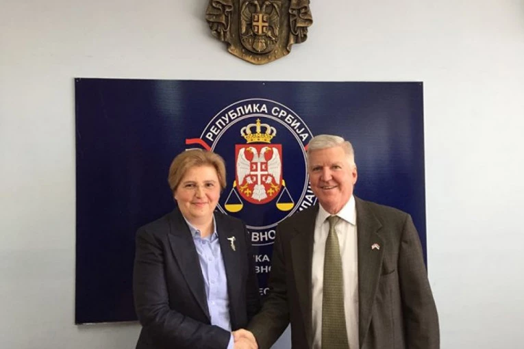 Republički javni tužilac, Zagorka Dolovac, i ambasador SAD, Kajl Skot, održali su sastanak u Republičkom javnom tužilaštvu zajedno sa saradnicima koji su angažovani na poslovima međunarodne tužilačke saradnje.