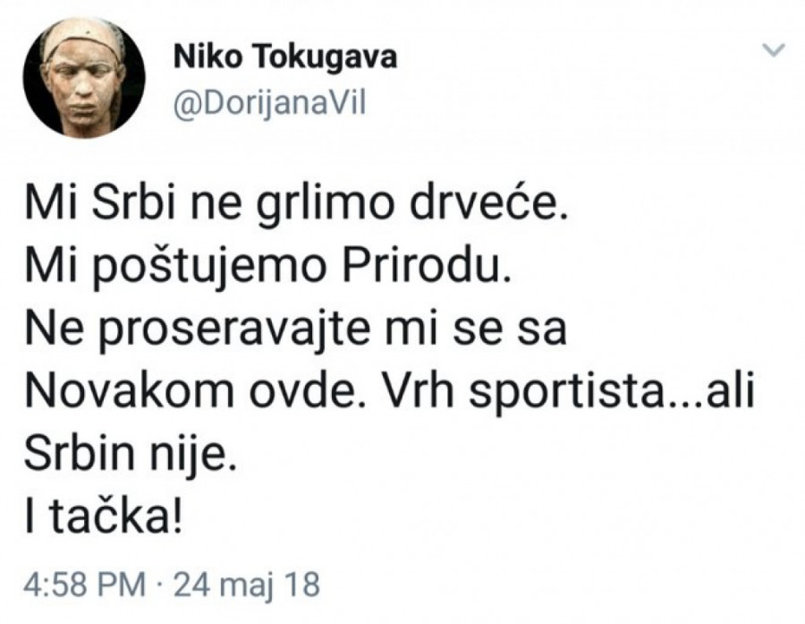Šminkerka Jelena Maćić koja je, kako je već odlično poznato, veoma dobra prijateljica Vuku Jeremiću, objavila na Tviteru sramotnu poruku. Naime, napisala je da najbolji srpski teniser Novak Đoković nije Srbin!